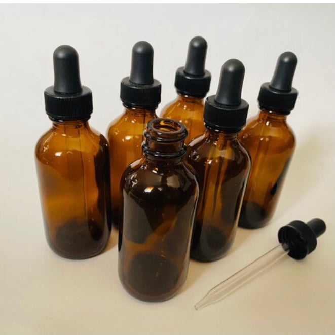 4 oz. Frosted Cobalt Blue Boston Round Glass Dropper Bottles