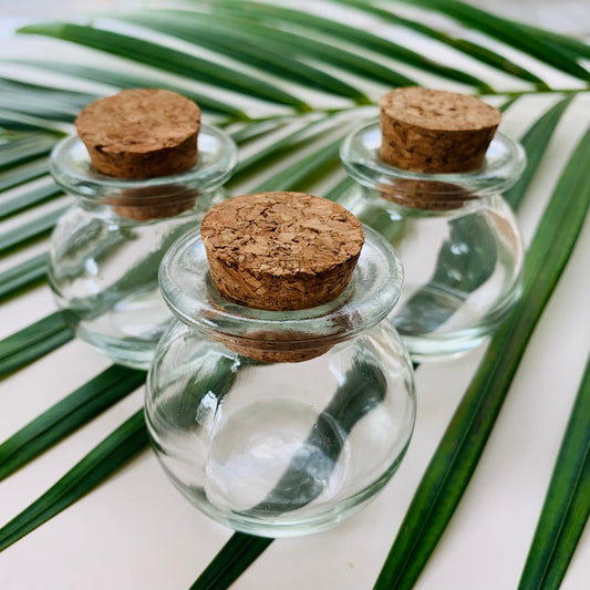 3.4 oz Mini Glass “Cottage” Jar with Cork Lid