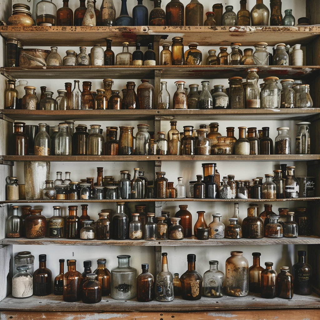 - Apothecary jars and dropper bottles