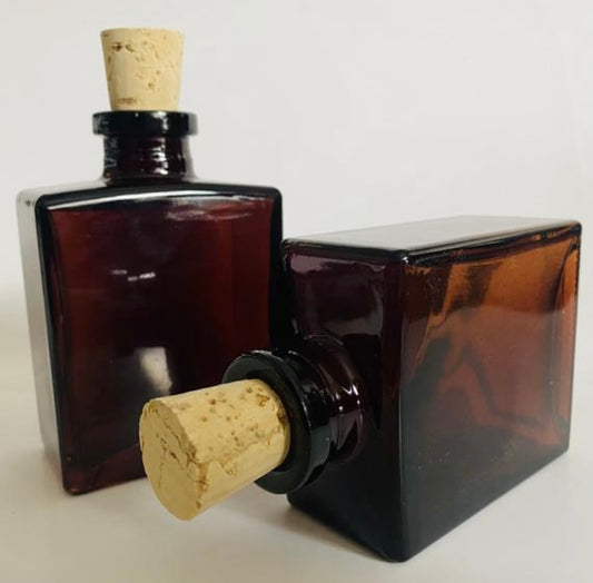 5 oz. Square Amber Glass Bottle with cork