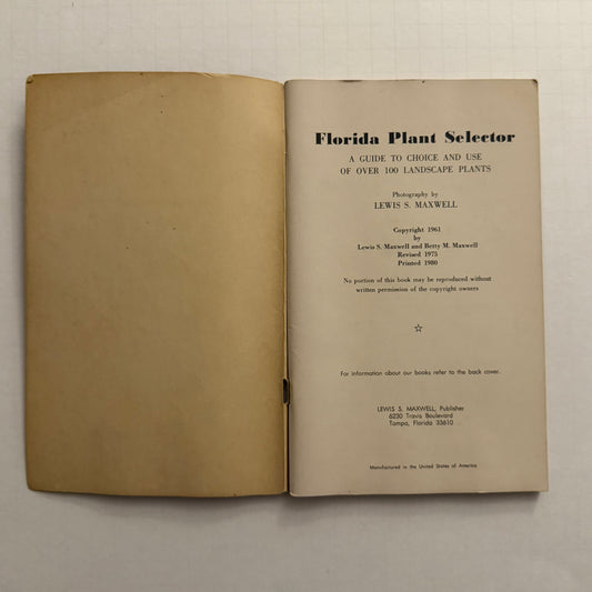 Florida Plant Selector (1980) – A Guide to the Choice & Use of Over 100 Landscape Plants | Vintage Florida Gardening Book