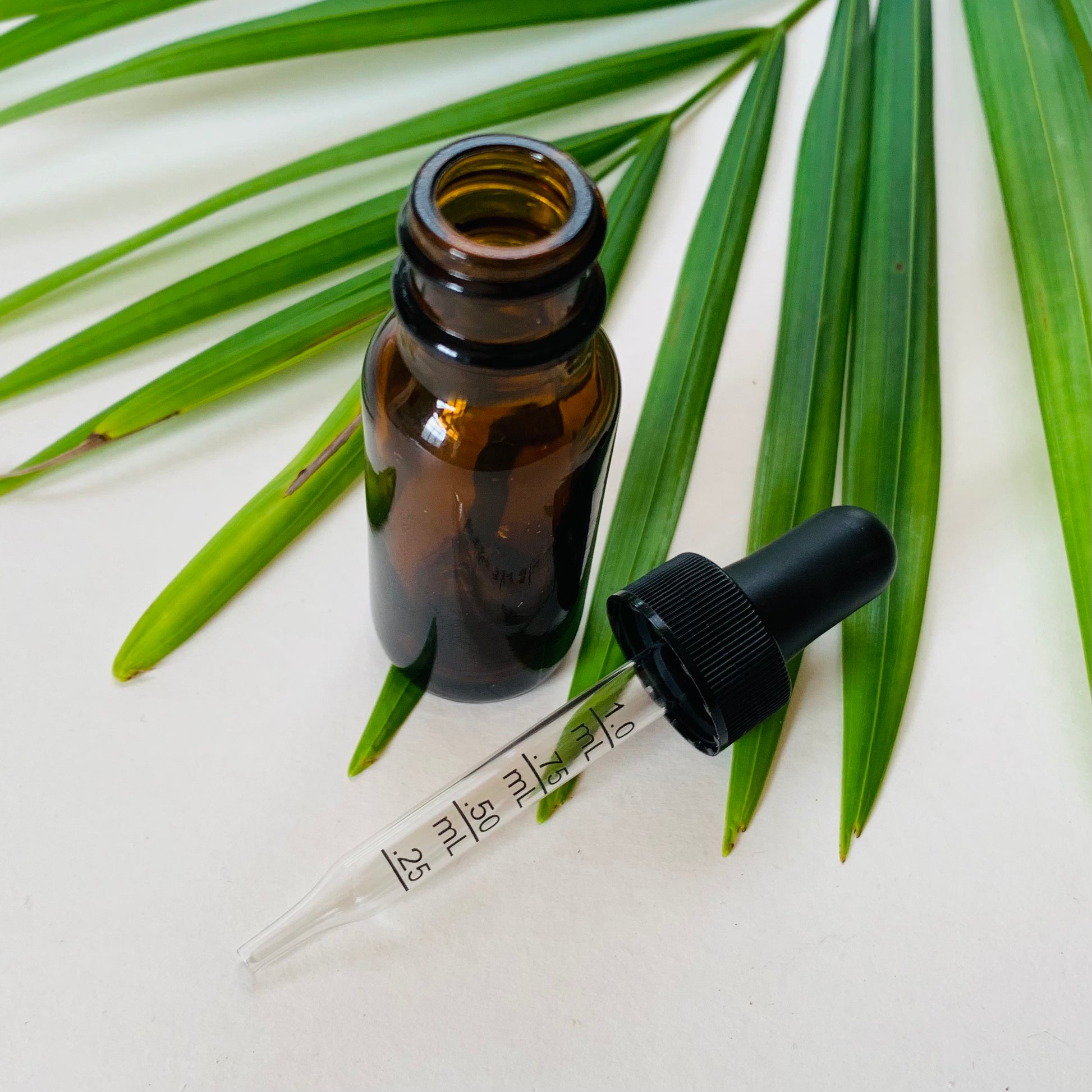 1/2 oz. Amber Glass Boston Round Bottle with Glass Graduated Dropper