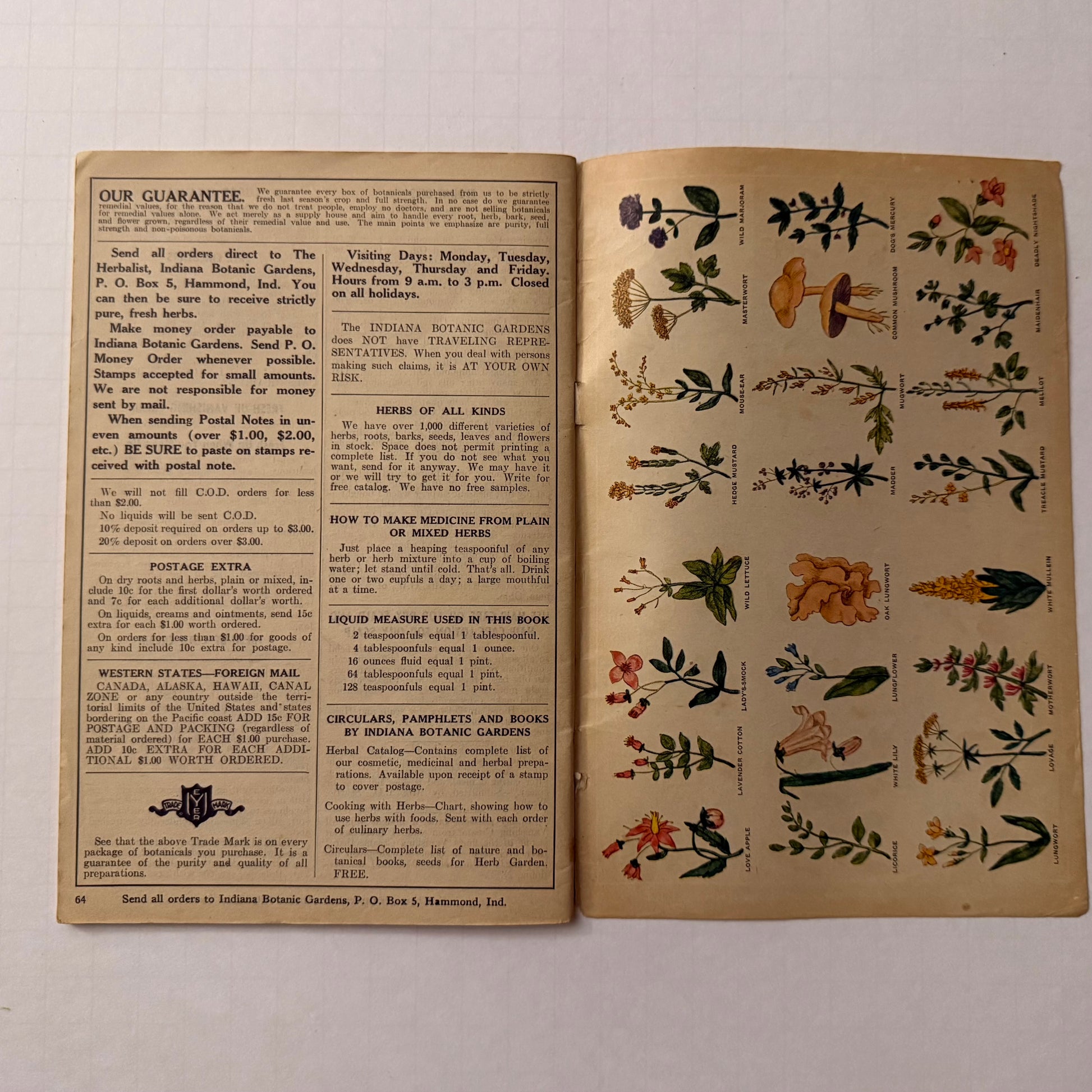Featuring colour-illustrated covers and black-and-white botanical line drawings inside, it presents a unique mid-century snapshot of American herbal culture, mail-order herb commerce, and the confluence of traditional remedies with the rural calendar.