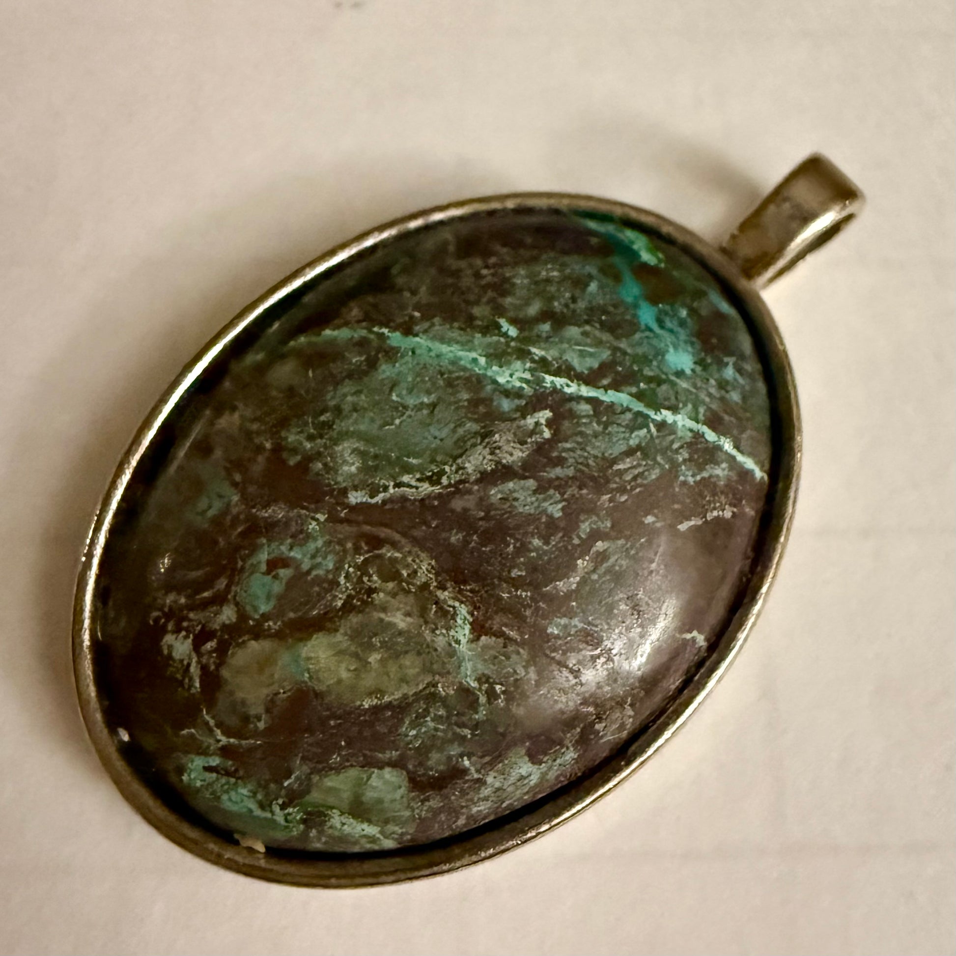 Chrysocolla and Malachite Oval Pendant | Natural Stone Necklace