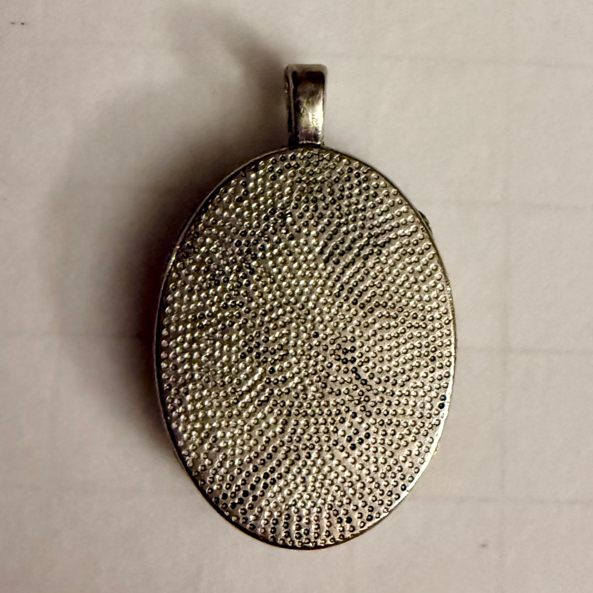 - Oval cabochon setting with metal frame and bail