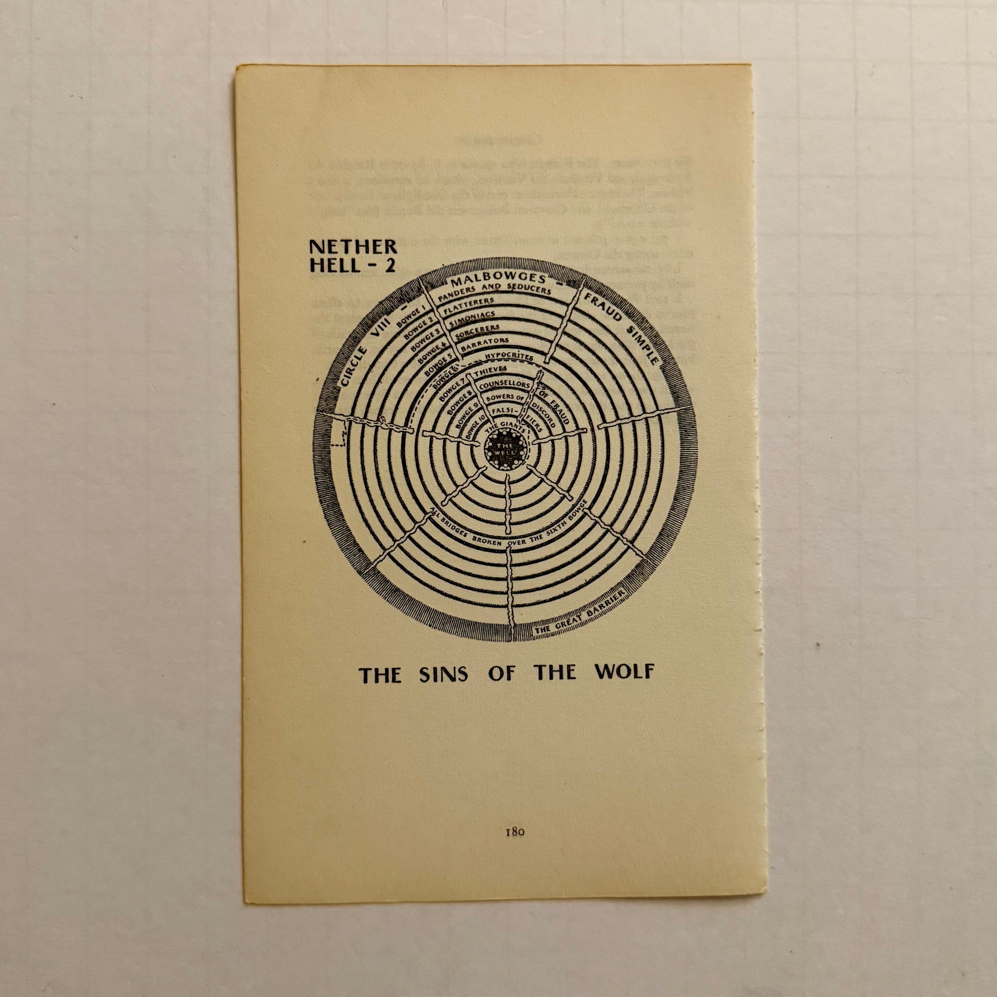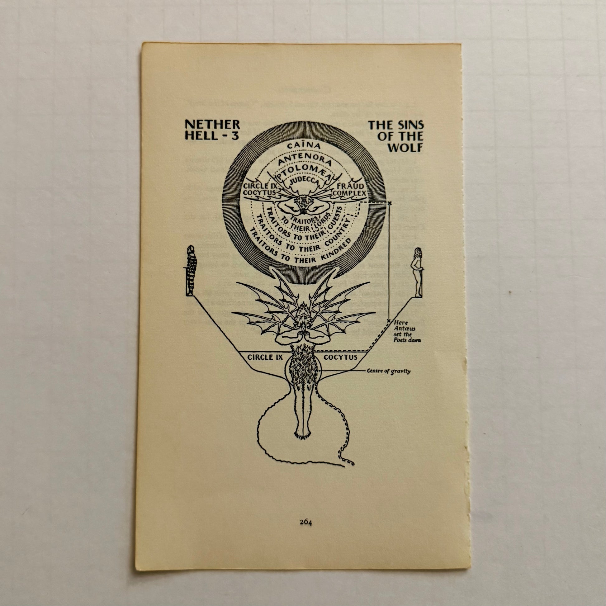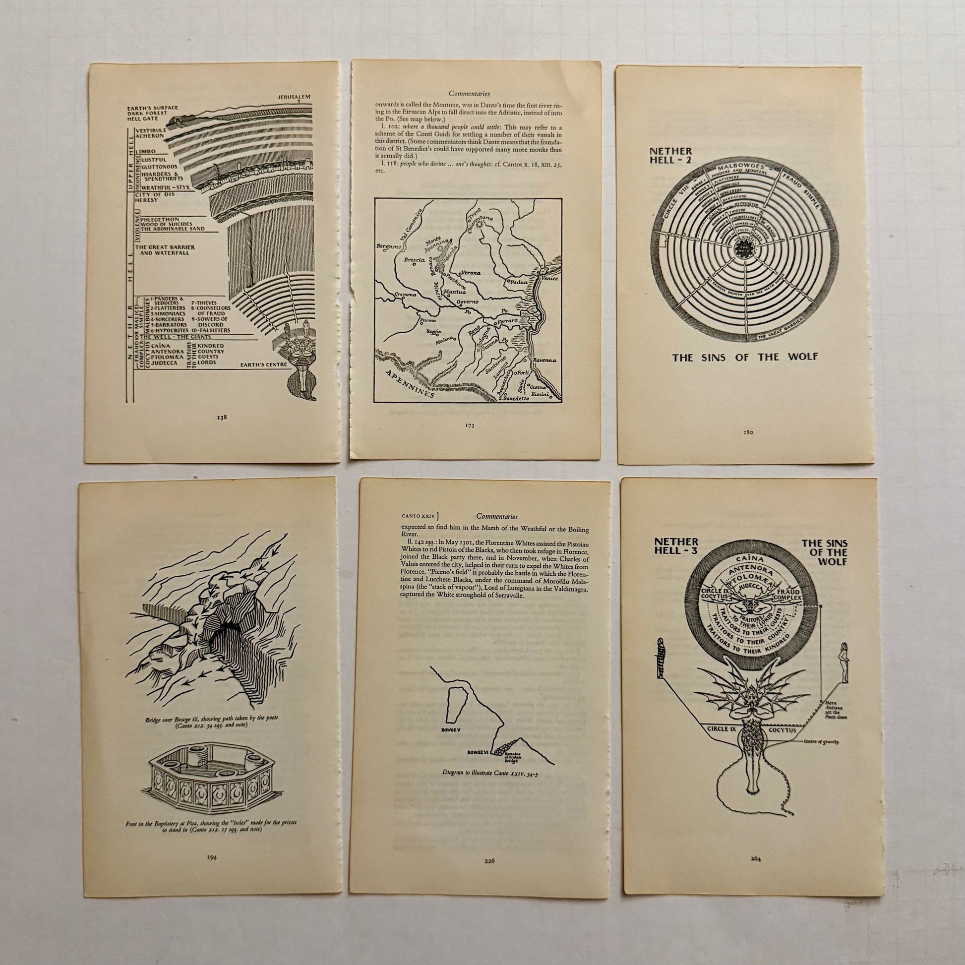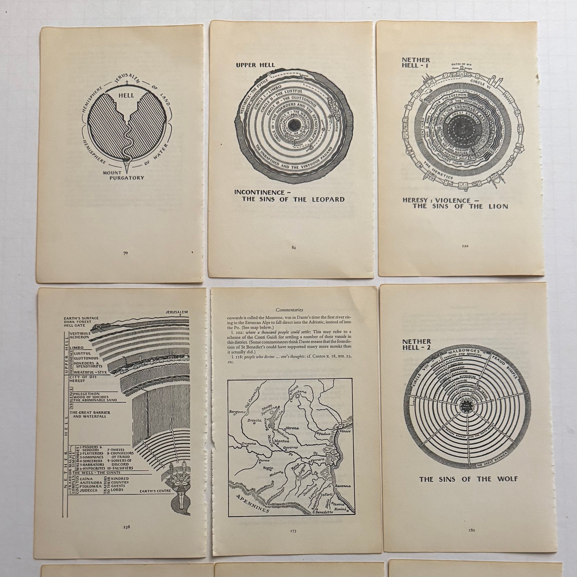 A complete set of 9 original diagram pages from the 1950 Penguin Classics edition of Dante Alighieri’s Inferno (The Divine Comedy: 1 — Hell), translated by Dorothy L. Sayers.