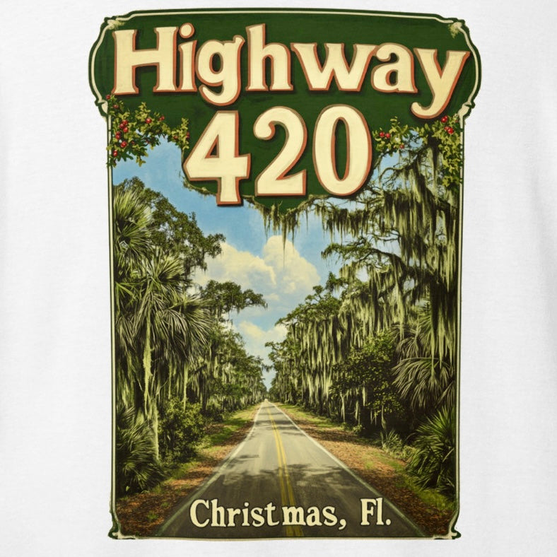 Highway 420 is a real stretch of Florida road, and Christmas, Florida is a real place—making this shirt a perfect blend of local lore, tongue-in-cheek humor, and classic Florida aesthetics. Whether you’re a lifelong Floridian, a road-trip wanderer, or someone who appreciates subtle humor with a sense of place, this tee sparks conversation without trying too hard.