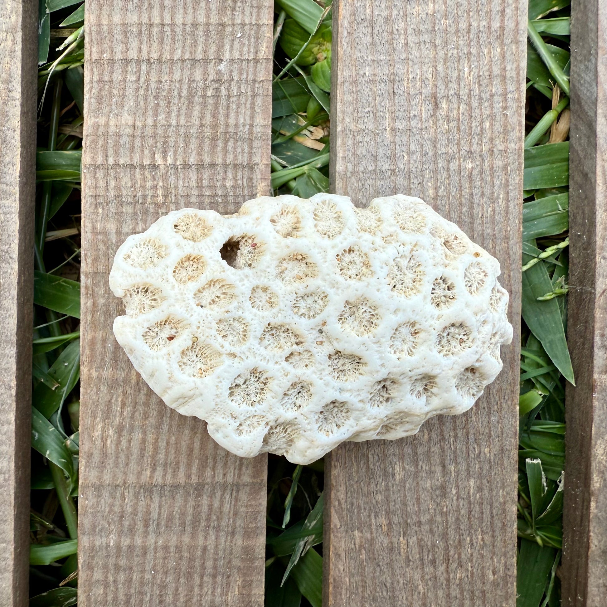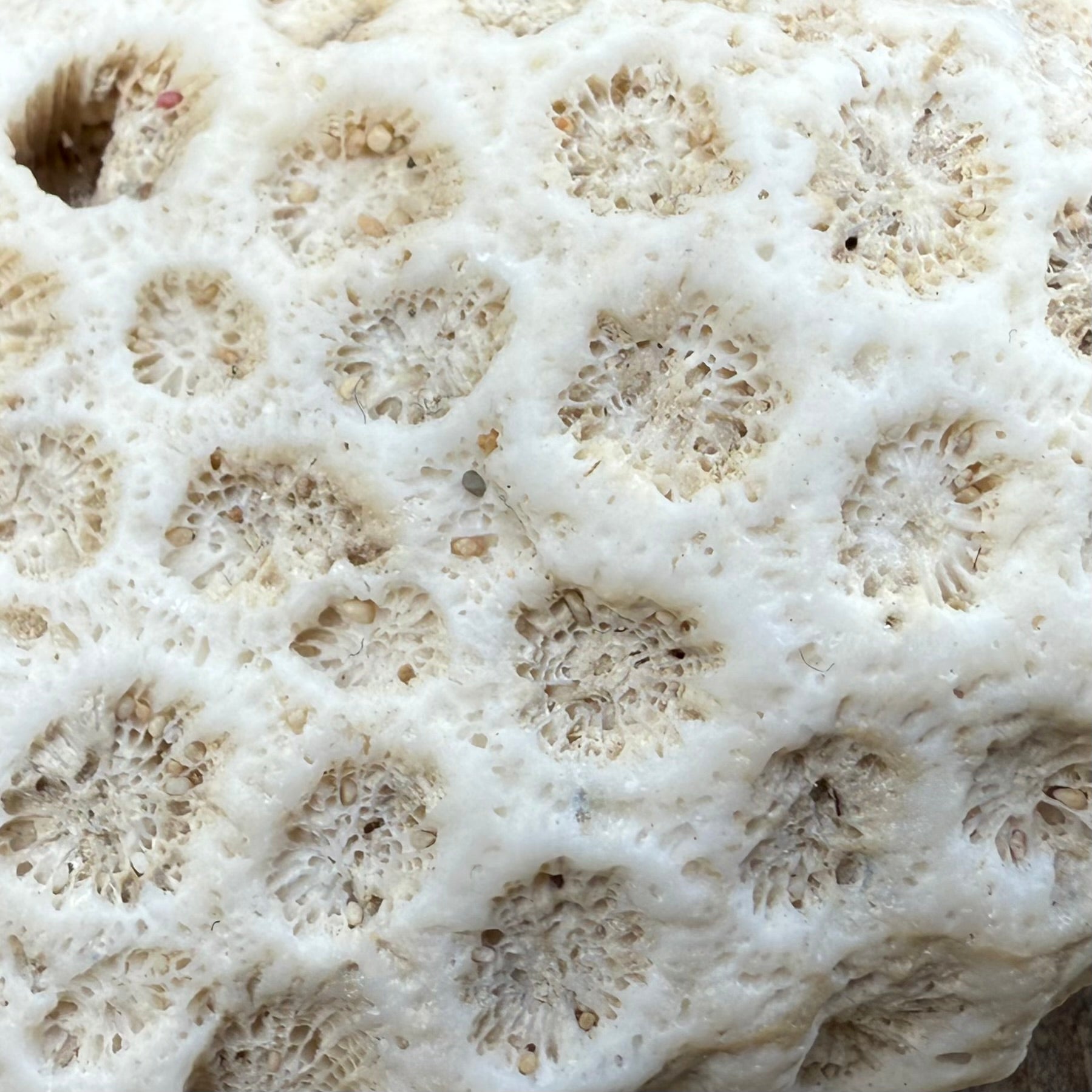 This 3.3-ounce star coral skeleton displays the delicate, flower-like chambers characteristic of Montastraea coral — each marking where a living coral polyp once grew. Smoothed and sun-bleached by the sea, this specimen embodies the quiet architecture of a living reef, preserved in natural ivory tones.