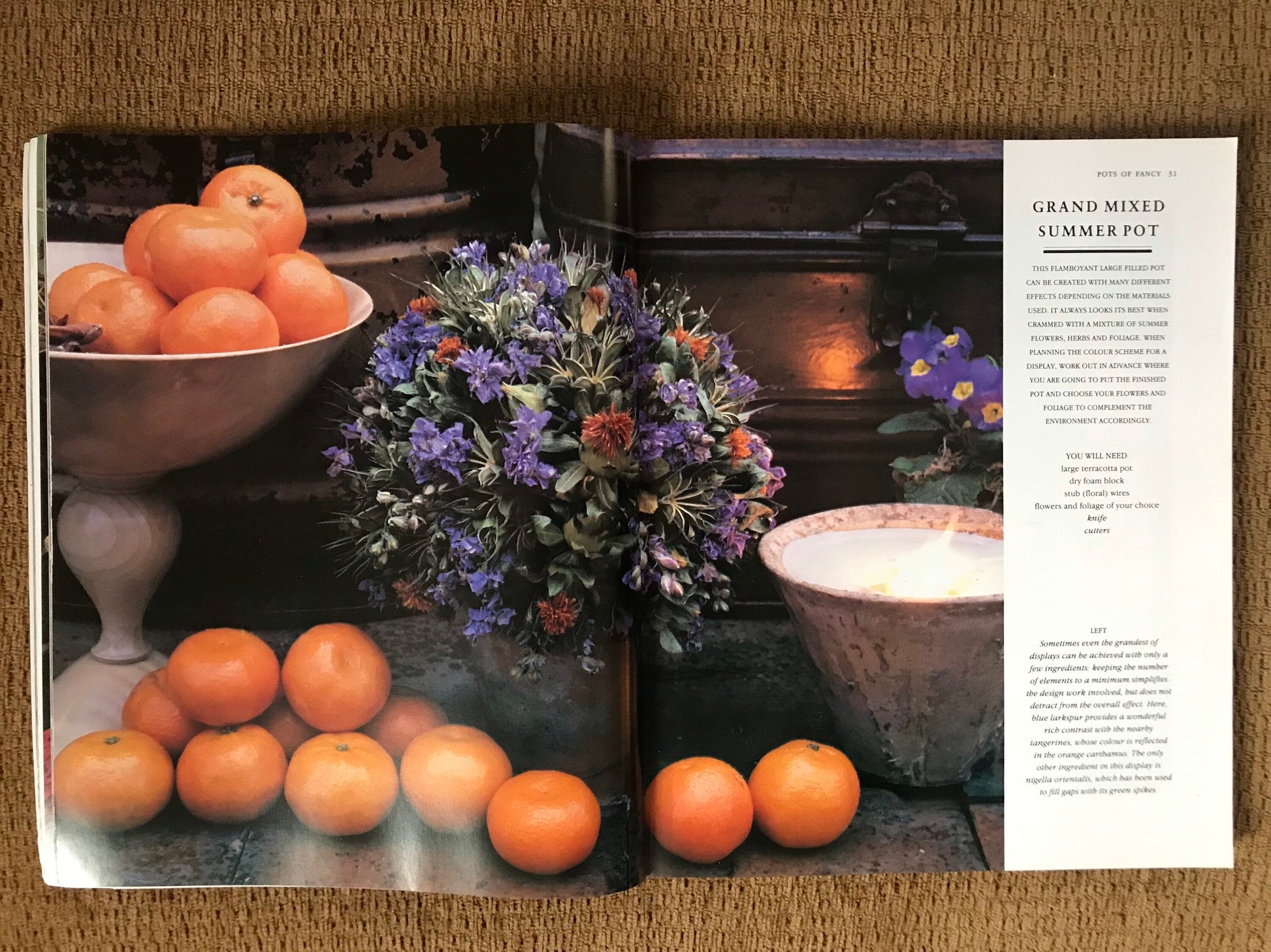 -Moving far beyond the standard dried flower arrangement, this imaginative book presents a veritable harvest of innovative ideas. From the simplest lavender and rosebud filled terra-cotta pot to breathtaking structures of lichen, leaves and twigs; from a plain but elegant sheaf of wheat and flowers with a raffia bow to a dazzling Christmas garland of nuts and winter foliage; from summery swags to avant garde moss globes, there are ideas to suit traditional and contemporary tastes - and every level of ability.