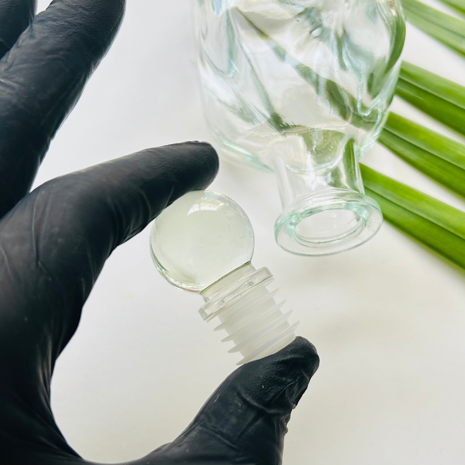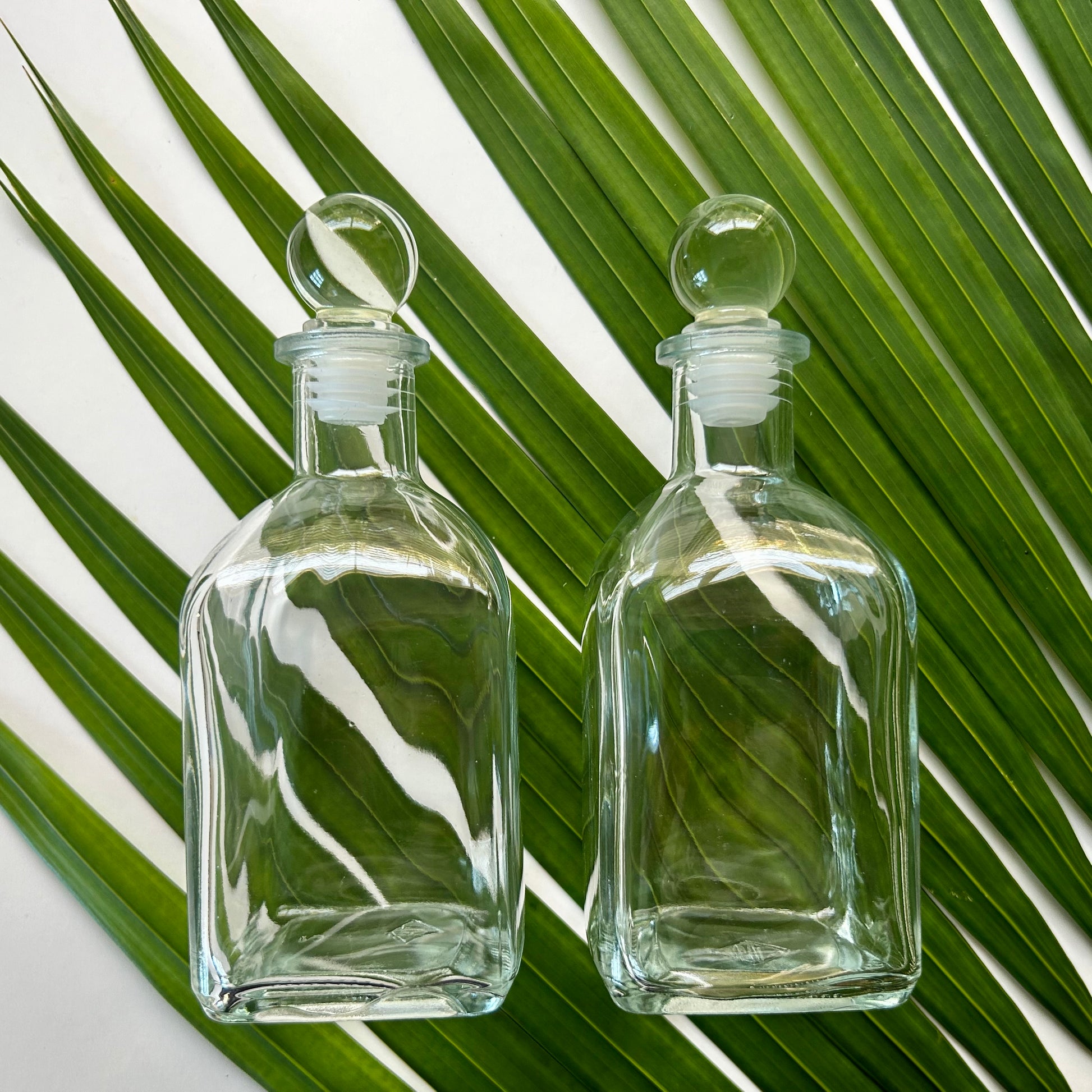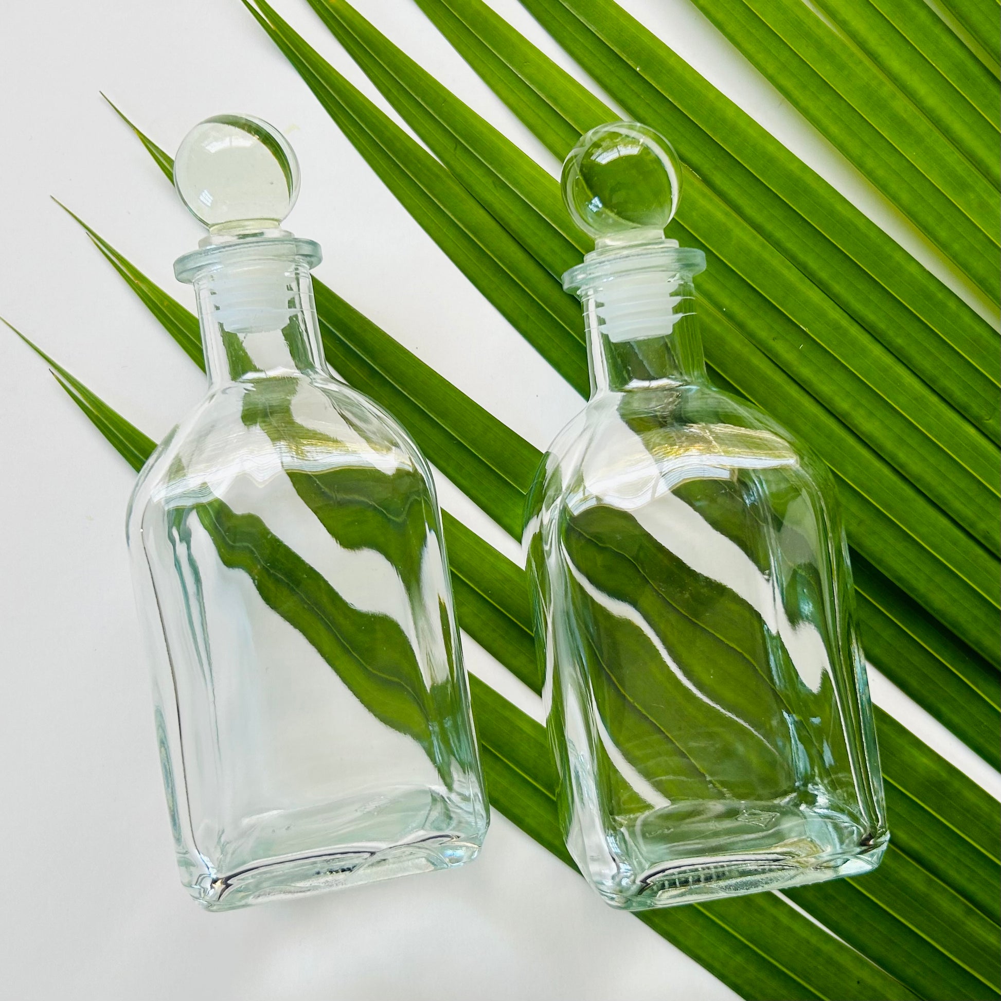 9 oz. Square Glass Bottle with Glass Ball Stopper
